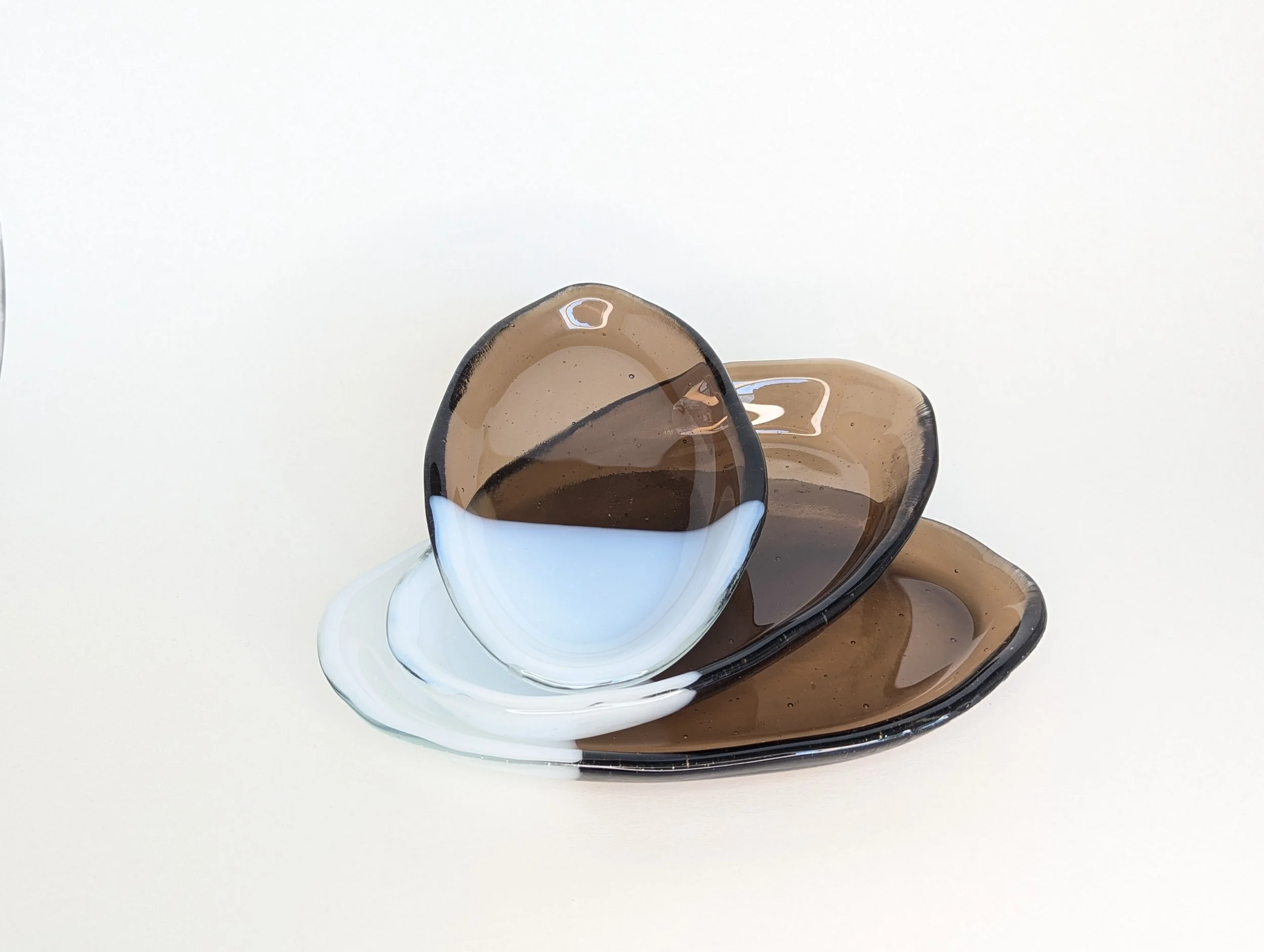 Handmade fused glass and ceramics that reflect the balance between solid earth and shifting light.